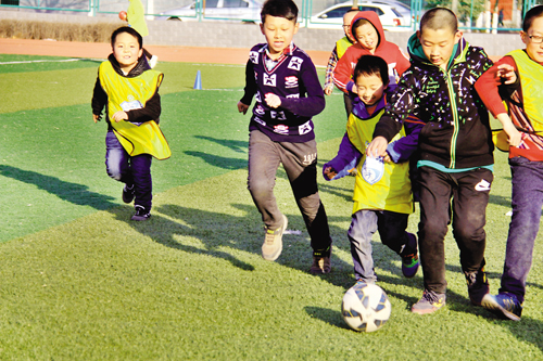 3月12日,原平農(nóng)校足球場(chǎng)內(nèi),小球迷正在進(jìn)行對(duì)抗訓(xùn)練。從小培養(yǎng)兒童熱愛(ài)運(yùn)動(dòng),熱愛(ài)足球,已成為時(shí)下一種教育理念。周末節(jié)假日兒童不再上各種培訓(xùn)班,踢足球,增體質(zhì),堅(jiān)定自信心,已成為一種習(xí)慣:我運(yùn)動(dòng),我健康,我是最棒的?。ㄆ?攝)