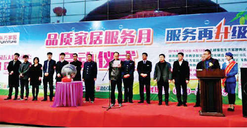 在“3·15”消費者權益日,忻州東方家園建材家具中心推出了“品質家居服務月”活動。期間,東方家園與山西愛潔達貿(mào)易公司、忻州市惠民物業(yè)管理公司強強合作,為顧客提供免費上門服務。圖為“品質家居服務月”啟動儀式。(李志強 攝)