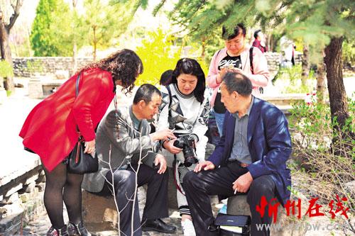 近日,代縣老干局和代縣老年大學(xué)在楊家將文化園舉辦攝影采風(fēng)實(shí)踐課,77名攝影愛好者來到風(fēng)景秀麗的楊家將文化園進(jìn)行攝影實(shí)踐?;顒?dòng)中,學(xué)員興趣盎然,情緒高漲,他們互相學(xué)習(xí),共同探討,將所學(xué)的攝影知識應(yīng)運(yùn)到實(shí)踐中來。圖為學(xué)員們正在相互交流攝影技藝(石俊文 劉睿 攝)