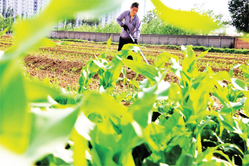 5 月17 日,原平市新原鄉(xiāng)農(nóng)民拿起鋤頭,正忙著進行田間管理。農(nóng)歷小滿將至,氣溫升高,降雨量逐漸增多,大田農(nóng)作物生長加快,原平農(nóng)民在田間地頭又忙活開了,澆水灌溉,松土間苗,為今年糧食的豐收打下堅實基礎(chǔ)。(吉建平 攝)