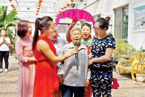 一首熱鬧紅火的《開門紅》秧歌舞拉開了文藝表演的序幕,節(jié)目種類豐富多樣,老人們?nèi)褙炞⒌挠^賞。一位94歲老人精彩的表演把節(jié)目推向高潮。院內(nèi)歡聲笑語,熱鬧非凡。