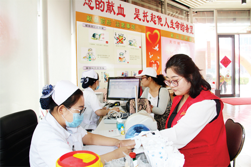 6月14日是“世界獻(xiàn)血者日”,為了感謝獻(xiàn)血者并傳遞獻(xiàn)血者與患者之間的“分享”與“相連”關(guān)系,鼓勵人們相互關(guān)愛,促進(jìn)社區(qū)團(tuán)結(jié),近日原平市街心廣場愛心獻(xiàn)血屋開展了“‘分享’與‘相連’血液連接你我”主題宣傳活動。該市共青團(tuán)市委組織志愿者發(fā)放宣傳圖冊、開展知識問答,傳播無償獻(xiàn)血的公益理念,使其更加深入人心。圖為志愿者與市民正在獻(xiàn)血。(褚震 攝)