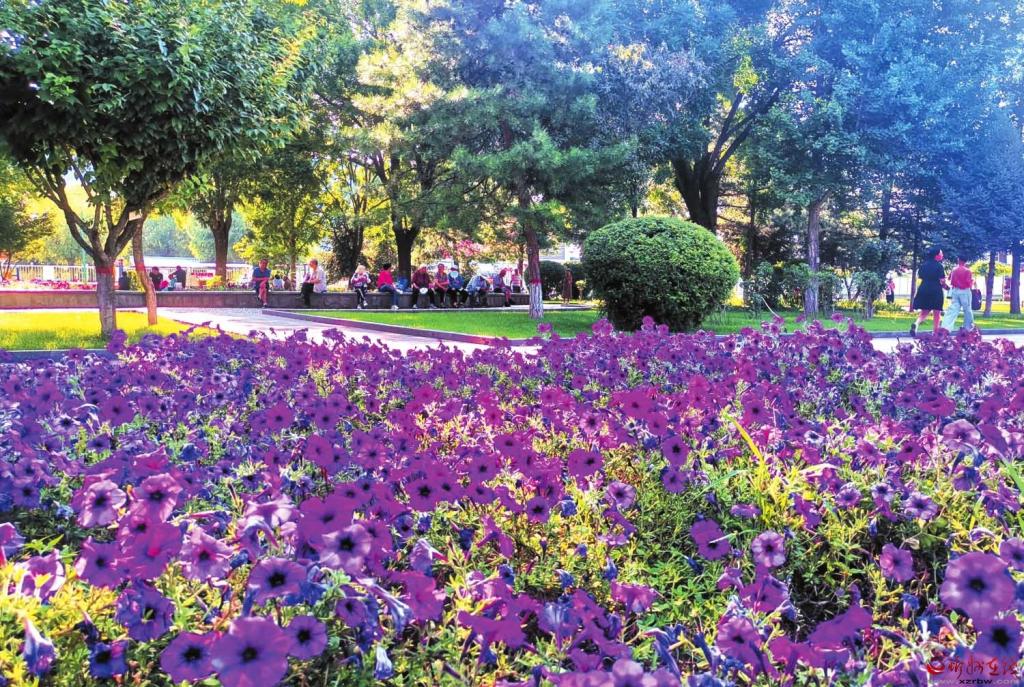 7月22日,市民在忻州城區(qū)體育廣場休閑納涼,享受清風徐來、綠意盎然、花團錦簇的國家園林城市之美。(