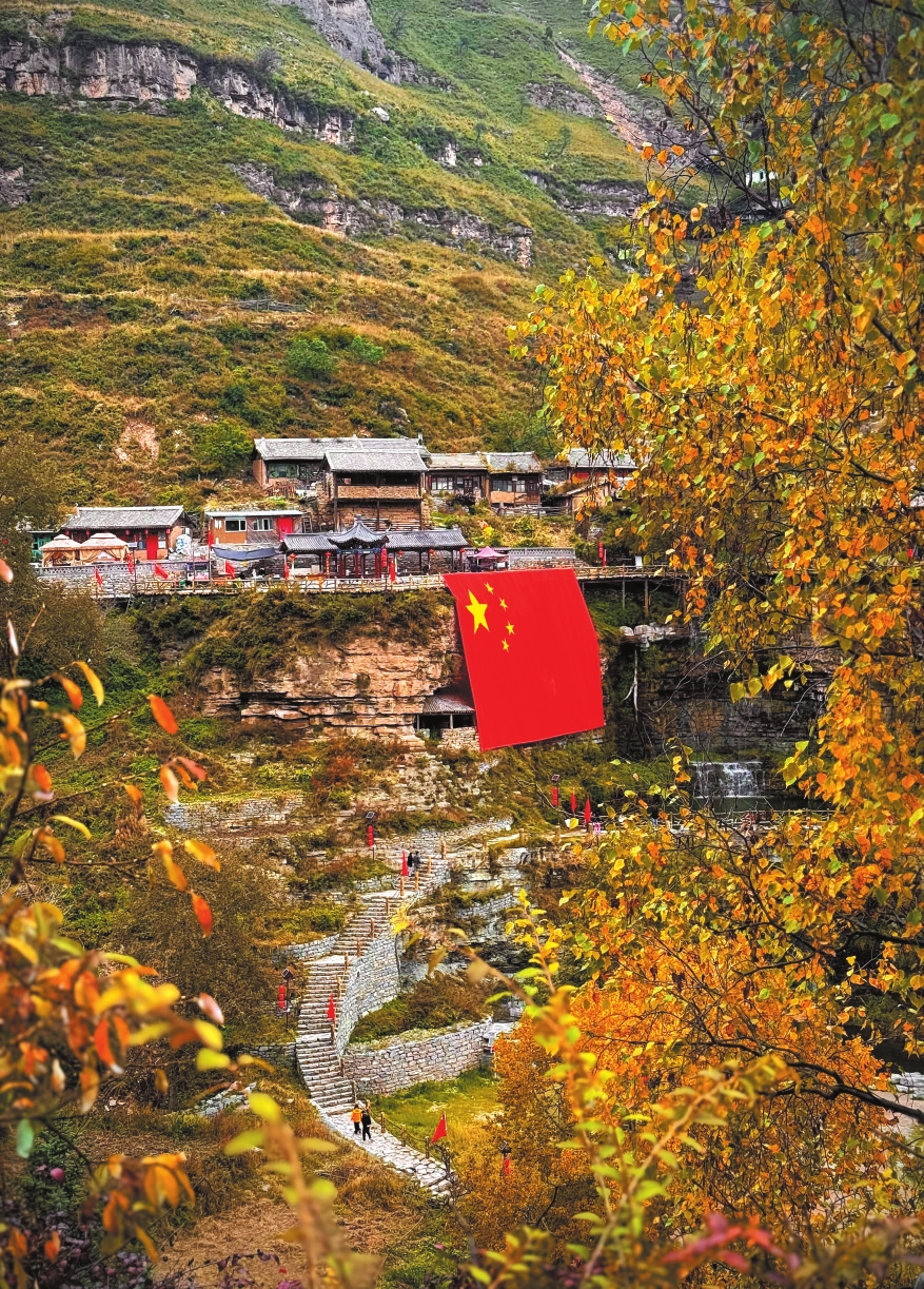 寧武懸空村,迎風(fēng)舞動(dòng)的五星紅旗分外奪目。吳光宇攝