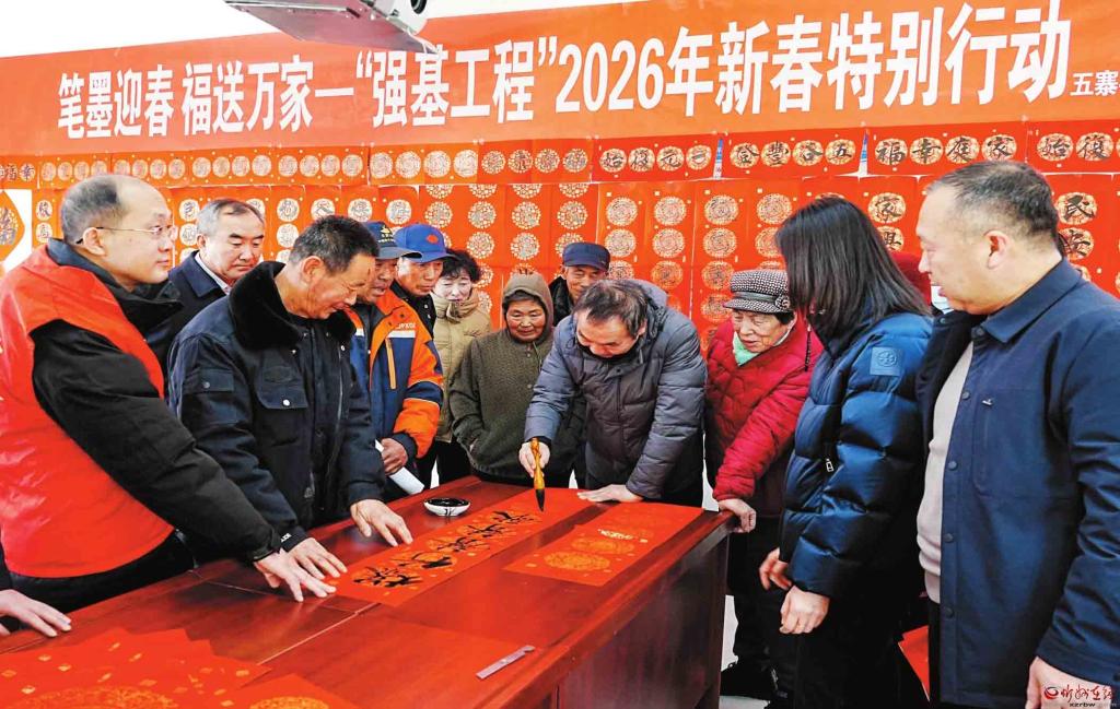 新春將至,年味漸濃。近日,由五寨縣文聯(lián)聯(lián)合縣總工會、團縣委舉辦的“筆墨迎春福送萬家”送春聯(lián)活動走進李家坪鄉(xiāng)李家坪、張家坪村,以筆墨為媒傳遞新春祝福,用文化服務(wù)筑牢基層精神根基,讓“強基工程”的溫暖觸角延伸至鄉(xiāng)村一線。(劉篤效攝