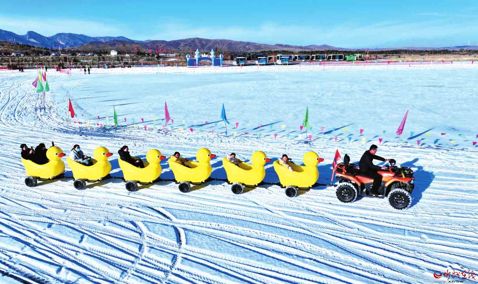 近日,寧武縣鴨子海冰雪大世界內(nèi)紅火熱鬧,一片歡樂(lè)景象。圖為冰面上,游客們盡情享受著冰雪項(xiàng)目帶來(lái)的樂(lè)趣。(吳光宇攝)