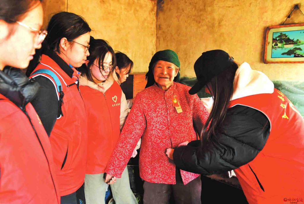 近日,五臺(tái)縣志愿者協(xié)會(huì)協(xié)同工業(yè)園社區(qū)志愿者和大學(xué)生志愿者,帶著精心準(zhǔn)備的年貨,走進(jìn)溝南鄉(xiāng)翟子溝村、東雷鄉(xiāng)東山底村、陳家莊鄉(xiāng)王城村等地,看望慰問(wèn)十二戶孤寡老人和困難家庭,向他們送上社會(huì)各界的關(guān)懷和新春的溫暖祝福。圖為志愿者為腿腳不便的高齡老人試穿新衣服。(盧俊華 攝)