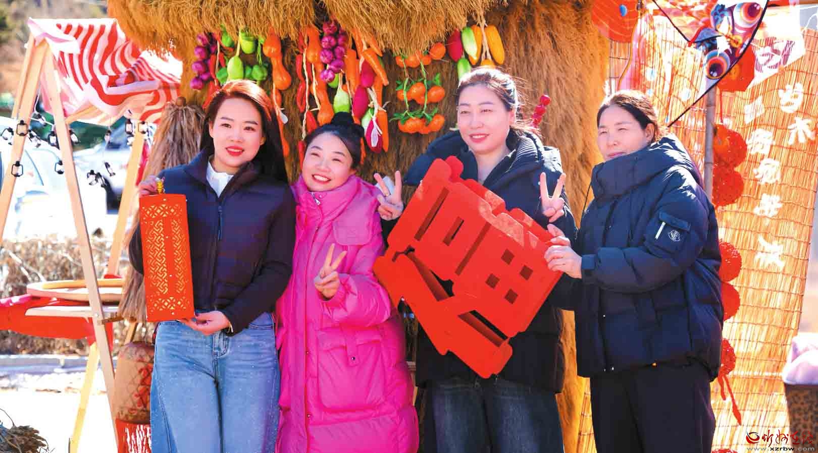 游客在蘆芽山旅游度假區(qū)游客中心新春主題打卡點駐足留影