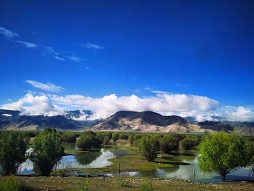 從拉薩到山南,是一段很長的旅程。駕車行駛在這里的公路上,野花野草野蠻生長,“青山隨云走,大地沿河流”。