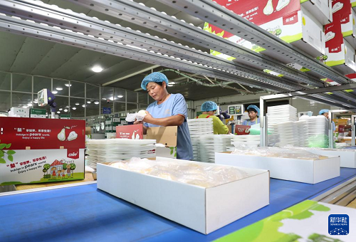 9月11日,河北省晉州市一家梨果出口企業(yè)的工人將梨果裝箱。(新華社記者 楊世堯 攝)