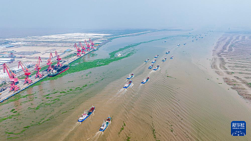 9月16日,在江蘇省鹽城市射陽(yáng)縣,近千艘漁船起航展開(kāi)捕撈作業(yè)(無(wú)人機(jī)照片)。(新華社發(fā) 彭嶺 攝)
