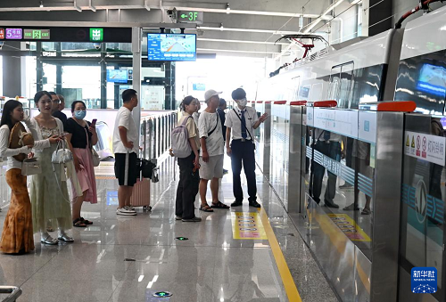 9月29日,人們?cè)跒I海快線(xiàn)帝封江站等候前往福州長(zhǎng)樂(lè)國(guó)際機(jī)場(chǎng)的列車(chē)。(新華社記者 林善傳 攝)