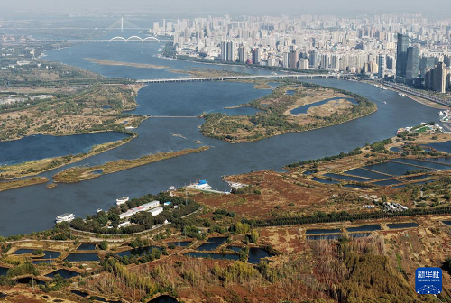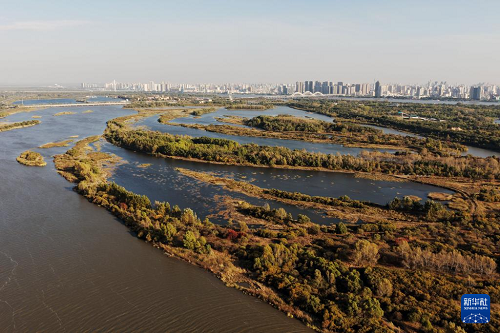 這是10月7日拍攝的哈爾濱金河灣濕地公園景色(無(wú)人機(jī)照片)。(新華社記者 王松 攝)