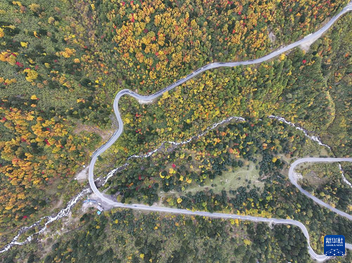 這是10月28日在林芝市巴宜區(qū)拍攝的色季拉山秋景(無(wú)人機(jī)照片)。(新華社記者 盧丹陽(yáng) 攝)