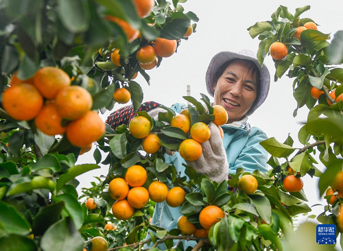 11月2日,湖南省永州市道縣蚣?jí)捂?zhèn)興橋村村民在采摘沙糖桔。(新華社發(fā) 蔣克青 攝)