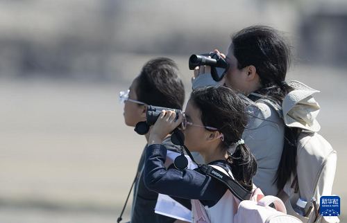 11月9日,泉州市觀鳥(niǎo)學(xué)會(huì)組織小觀鳥(niǎo)愛(ài)好者觀測(cè)勺嘴鷸。(新華社記者 魏培全 攝)