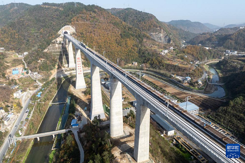 這是11月27日拍攝的湖北十堰神定河特大橋(無人機照片)。(新華社記者 杜子璇 攝)
