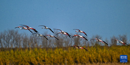 江蘇東臺:火烈鳥飛抵條子泥濕地越冬