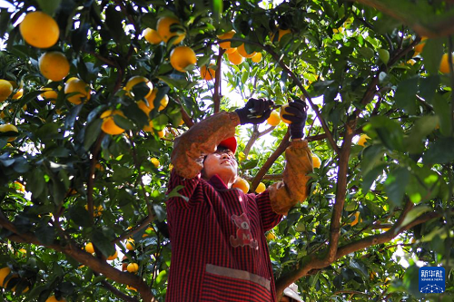 12月11日,在浙江省慶元縣竹口鎮(zhèn)黃壇水干果園區(qū)內(nèi),工人在采摘甜桔柚。(新華社記者 劉梓漪 攝)