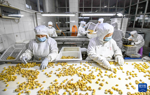 12月16日,工人在河北省遵化市蘇家洼鎮(zhèn)的一家食品有限公司車間加工板栗。(新華社發(fā) 劉滿倉(cāng) 攝)