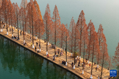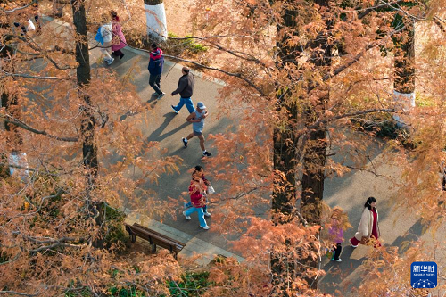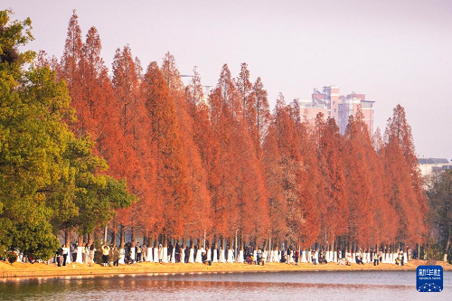 連日來(lái),湖南省長(zhǎng)沙市烈士公園的水杉樹(shù)葉轉(zhuǎn)紅,在冬日暖陽(yáng)的映照下,園內(nèi)景色如畫,吸引不少市民前來(lái)游玩打卡。