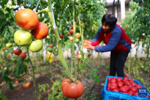 12月18日,菜農(nóng)在山東省滕州市西崗鎮(zhèn)采摘西紅柿。(新華社發(fā) 李志軍 攝)