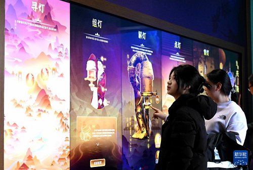 1月13日,參觀者在河北博物院數(shù)字互動(dòng)體驗(yàn)展中體驗(yàn)互動(dòng)。(新華社發(fā) 陳其保 攝)