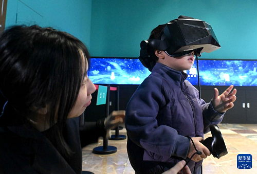 1月13日,小朋友在河北博物院數(shù)字互動(dòng)體驗(yàn)展中體驗(yàn)。(新華社發(fā) 陳其保 攝)