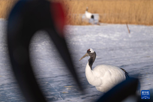 這是1月21日拍攝的黑龍江扎龍國家級自然保護區(qū)內(nèi)的丹頂鶴。(新華社記者 張濤 攝)