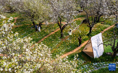 近日,云南昆明春光漸濃,繁花競放,人們踏青賞花,感受盎然春意。