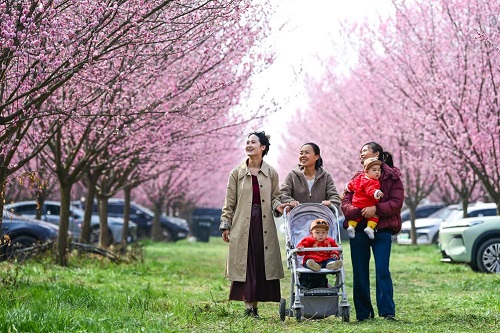 3月11日,游人在西安市鄠邑區(qū)甘河街道丁村梅花種植園內休閑。(新華社記者 鄒競一 攝)