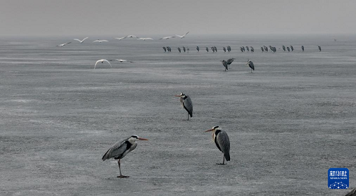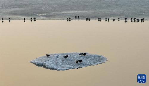 近日,大批候鳥飛抵松花江哈爾濱段江面。各種候鳥在冰面上休息,在水中嬉戲、覓食,盡顯春之生機。