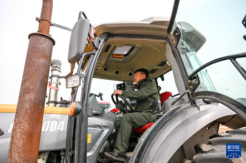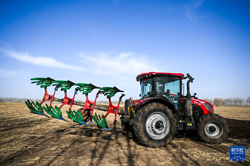 4月19日,在通遼市科爾沁左翼后旗甘旗卡鎮(zhèn),農(nóng)機(jī)手駕駛農(nóng)機(jī)翻地。(新華社記者 連振 攝)