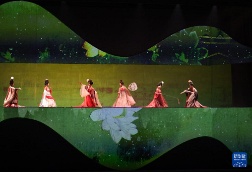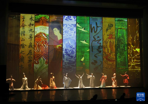 在遼寧大劇院拍攝的《古色·國(guó)寶遼寧》演出現(xiàn)場(chǎng)(4月19日攝)。(新華社記者 李鋼 攝)