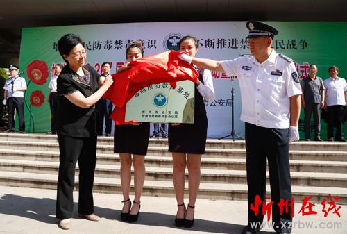 市公安局局長楊梅喜、忻州師范學(xué)院院長張虎芳共同為毒品預(yù)防教育基地揭牌