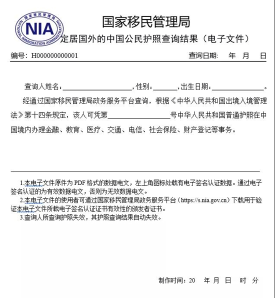 國(guó)家移民管理局相關(guān)負(fù)責(zé)人表示,根據(jù)《中華人民共和國(guó)電子簽名法》和《中華人民共和國(guó)政府信息公開條例》有關(guān)規(guī)定,華僑個(gè)人經(jīng)上述途徑所獲得的查詢結(jié)果電子文件已經(jīng)國(guó)家移民管理局電子簽名,與同類紙質(zhì)文件具有相同效力,華僑可將電子文件向有關(guān)辦事服務(wù)機(jī)構(gòu)出示或提供。