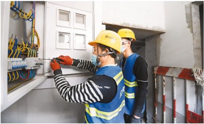 圖為3月25日,工人在北京農(nóng)光里重汽小區(qū)進(jìn)行老樓改造工程施工作業(yè)。新華社記者 鞠煥宗攝