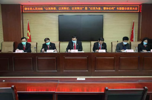 5月13日,靜樂法院召開“堅持黨對司法工作的絕對領導、堅持中國特色社會主義法治道路”專題教育,“以案釋德、以案釋紀、以案釋法”暨“以案為鑒、警鐘長鳴”警示教育動員部署會,院黨組書記、院長呂建文出席會議并講話,院黨組成員和縣紀委監(jiān)委第三派駐紀檢組組長李躍華及全體干警參加會議。院黨組成員、副院長姚亮懷主持。