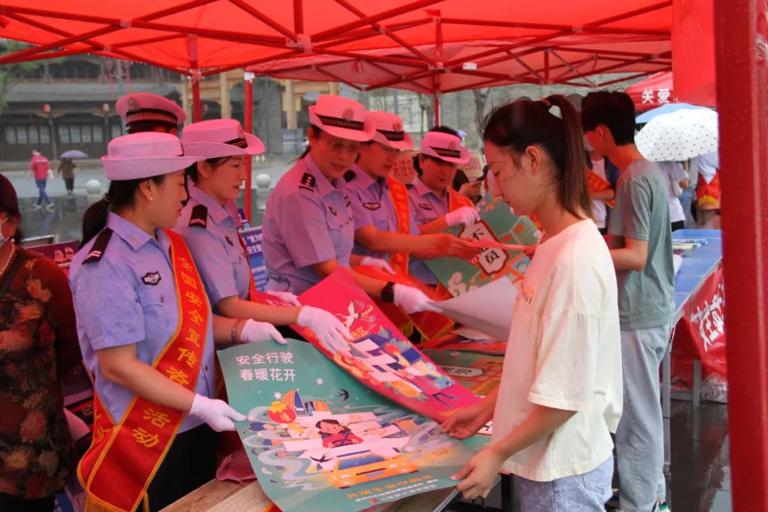 今年6月16日是全國第20個“安全生產(chǎn)月”宣傳咨詢?nèi)?,主題是“落實安全責(zé)任,推動安全發(fā)展”。當(dāng)日上午,忻州市公安局交警支隊按照上級安排,在忻州古城景區(qū)北城門樓廣場的指定位置設(shè)立咨詢展臺,擺放事故警示展板、宣傳海報、手提袋、宣傳單等宣傳品,開展交通安全與事故預(yù)防宣傳咨詢活動,旨在增強廣大交通參與者的道路交通安全意識、法治意識、文明意識。