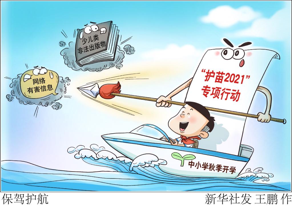 新華社北京9月6日電(記者史競(jìng)男、王鵬)按照全國(guó)“掃黃打非”辦公室部署安排,各地“掃黃打非”部門(mén)近期深入開(kāi)展“護(hù)苗2021”專(zhuān)項(xiàng)行動(dòng),在專(zhuān)項(xiàng)整治暑期文化市場(chǎng)基礎(chǔ)上,積極開(kāi)展“護(hù)苗·開(kāi)學(xué)季”活動(dòng),為中小學(xué)秋季開(kāi)學(xué)保駕護(hù)航。