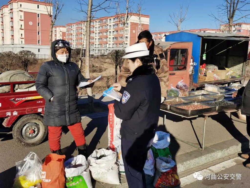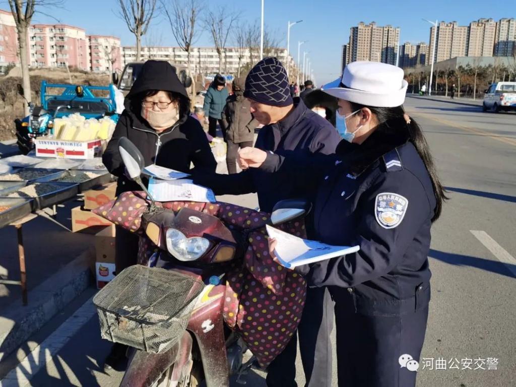 12月17日,河曲縣公安局交警大隊(duì)宣教民警走進(jìn)移民村集市,積極開(kāi)展“冬季交通安全”宣傳活動(dòng)。