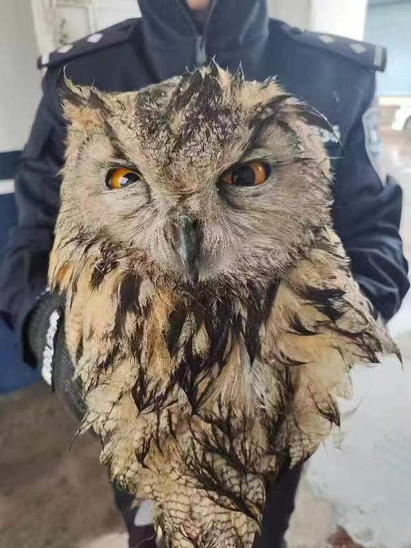 民警立即到達(dá)現(xiàn)場,仔細(xì)查看后發(fā)現(xiàn)貓頭鷹翅膀受傷,因巡鎮(zhèn)鎮(zhèn)沒有專門的野生動(dòng)物救助站,于是將其送往當(dāng)?shù)孬F醫(yī)站治療。