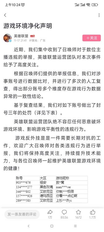 近日,英雄聯(lián)盟主播被質(zhì)疑使用腳本鬧得沸沸揚(yáng)揚(yáng)。在經(jīng)歷網(wǎng)友錄屏鑒定、主播自證辯解后,英雄聯(lián)盟官方下場(chǎng),通過(guò)技術(shù)手段多重復(fù)查,幾位大主播求錘得錘終于被封號(hào)三年,大快人心。