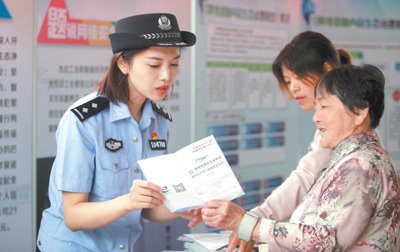 江蘇省揚州市,民警為市民講解國家網(wǎng)絡安全知識。 孟德龍攝(影像中國)