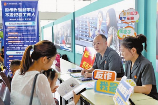 近日,成都鐵路運輸?shù)谝环ㄔ骸俺尚』ァ逼辗ㄐ》株犌巴啥紪|站站前廣場、候車廳及列車車廂開展反詐主題宣傳活動。活動現(xiàn)場,普法小分隊以通俗易懂的語言向群眾宣傳講解電信網(wǎng)絡詐騙案件的特點、“兩卡”詐騙的常見套路和新型手段及防范技巧,曝光“供卡”、提供廣告推廣、“跑分”轉(zhuǎn)移涉詐資金等犯罪行為,同時,干警向現(xiàn)場群眾發(fā)放宣傳手冊,面對面開展法律咨詢,引導群眾樹立反詐思維。