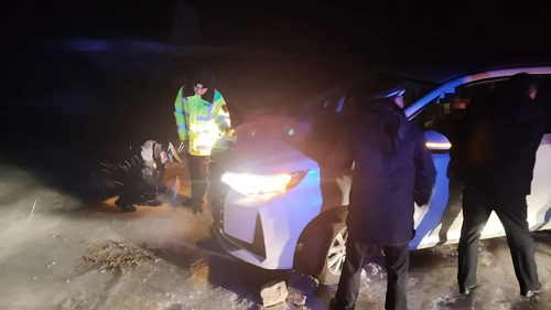 接到報(bào)警后,神堂堡派出所民警迅速通過電話聯(lián)系報(bào)警人,得知車上共有七人,多為婦女兒童,民警首先安撫游客情緒,并在確定具體地點(diǎn)后,立即與神堂堡交警中隊(duì)民警驅(qū)車趕往事發(fā)地。到達(dá)現(xiàn)場(chǎng)后,民警了解到,報(bào)警人張某與家人朋友自駕前往五臺(tái)山旅游,開到蓮花崖大峽谷山區(qū)路段時(shí)由于路面有冰導(dǎo)致車輛打滑沖出路面,車輛正被困在一處斜坡處,距離前面的深溝只有一米左右,進(jìn)退兩難,無法動(dòng)彈。此時(shí),車上幾名游客已凍得瑟瑟發(fā)抖,情況不容樂觀。民警們第一時(shí)間制定救援措施,他們不畏嚴(yán)寒、相互配合,經(jīng)過長(zhǎng)時(shí)間的努力,終于將被困車輛從冰面推到了無冰路段。車輛脫困,游客對(duì)民警們的及時(shí)救援表示了由衷的感謝,緊緊握住民警的手,激動(dòng)地說:“非常感謝警察同志的幫助,您們是我們心中最好的警察!”