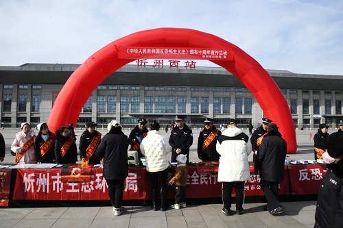 《中華人民共和國(guó)反恐怖主義法》頒布實(shí)施十周年之際,為深入貫徹總體國(guó)家安全觀,引導(dǎo)廣大人民群眾增強(qiáng)反恐意識(shí)、強(qiáng)化反恐責(zé)任、踐行反恐義務(wù),筑牢全社會(huì)反恐安全防線,12月26日上午,忻州市反恐怖領(lǐng)導(dǎo)小組在忻州西站東廣場(chǎng)開展“全民反恐 共創(chuàng)平安”主題宣傳活動(dòng)。