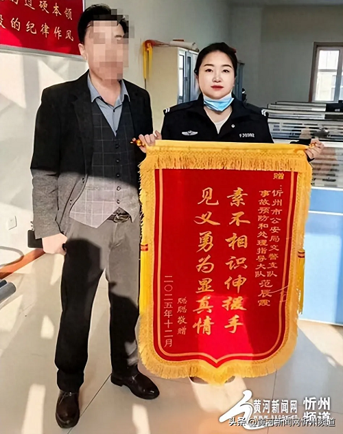 12月16日晚,一名市民因飲酒過量倒在雪夜路旁,幸得忻州市公安局交管支隊(duì)事故預(yù)防和處理指導(dǎo)大隊(duì)輔警范辰霞及時發(fā)現(xiàn)并救助,最終化險為夷。12月22日,獲救市民專程送來錦旗,向危難時刻伸出援手的交警同志表達(dá)謝意。