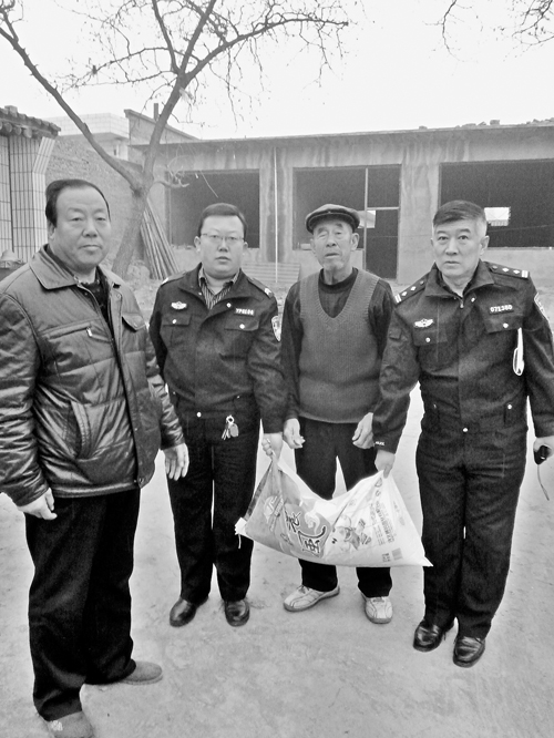近年來,大隊(duì)把扶貧工作當(dāng)作一項(xiàng)政治任務(wù)抓在手上,為了更好地精準(zhǔn)扶貧,按計(jì)劃力爭提前完成扶貧攻堅(jiān)任務(wù)。2015年,李晉生擔(dān)任了原平市南白鄉(xiāng)尚義村的第一書記,負(fù)責(zé)該村的幫扶工作。南白鄉(xiāng)尚義村是原平市的重點(diǎn)貧困村,也是交警大隊(duì)幫扶村,全村204人,貧困人口占80%。當(dāng)年12月17日,他自籌2000多元,購買了米、面、糧、油,與大隊(duì)的4位民警來到了南白鄉(xiāng)尚義村走訪慰問特困家庭。在全市開展精準(zhǔn)扶貧的攻堅(jiān)階段,為了讓特困家庭度過溫暖的冬季,交警大隊(duì)民警進(jìn)村入戶共慰問五保戶、特困戶8戶,為他們送去了面粉、大米和食用油。同時(shí),大隊(duì)長還看望了90歲高齡的抗戰(zhàn)老兵趙書良,1925年出生的趙書良老人,17歲時(shí)就參軍,在抗日戰(zhàn)爭中多次立功授獎(jiǎng)。當(dāng)老人雙手接過慰問金后,激動(dòng)地說:“還是共產(chǎn)黨好,人民警察和人民真是心連心??!”