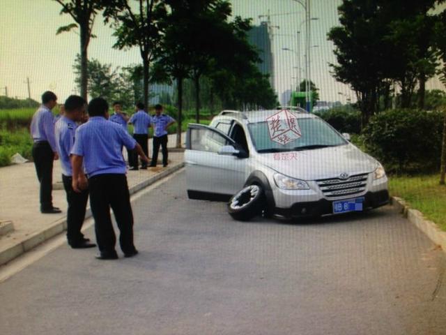 7月9日下午5時許,大冶市大冶北站高鐵大道路口,一輛銀灰色的小轎車在經過公交站牌時,徑直駛上了路中間一塊10厘米高的水泥隔離帶。